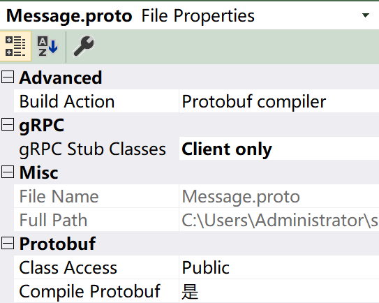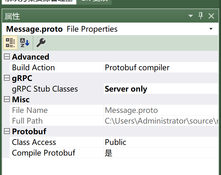 右键Message.proto 点属性 设置成如下