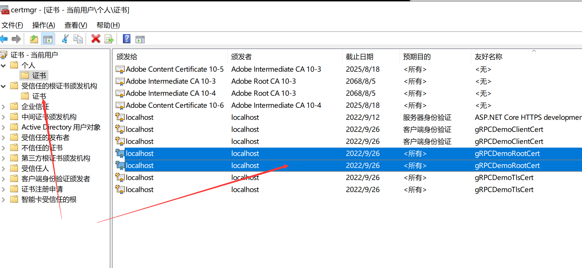 生成好后把 gRPCDemoSelfCert.pfx放到客户端,gRPCDemoSslCert.pfx放服务端目录下