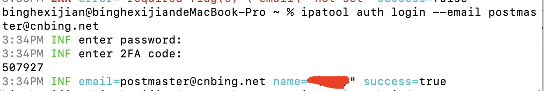 $ ipatool auth login --email postmaster@cnbing.net(你的邮箱)