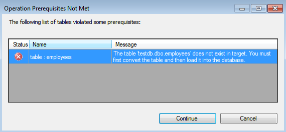 4)先浏览一下,本来是想迁移Employees下的Employees表--->>>MSSQL的某个库下,结果下表没列出,待查为什么识别不到的原因,