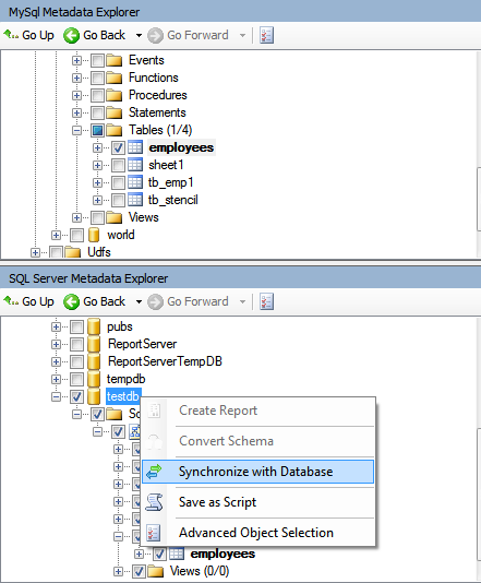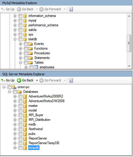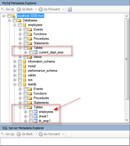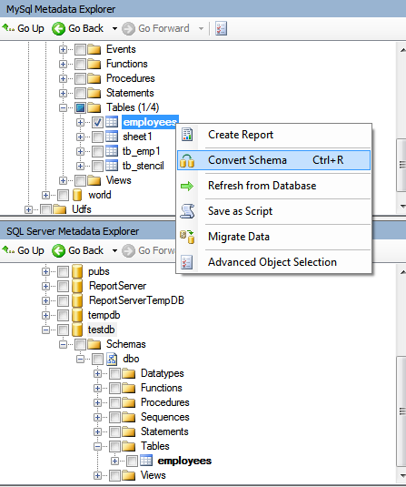7.在MySQL explorer中,执行Convert Schema,执行完之后,才有SQL Server Metadata Explorer中的组织: