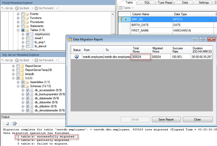 于是Copy了此表到testdb库下后,在SQL Server Migration Assistant for MySQL可以识别到,为了做其他试验,先迁移表