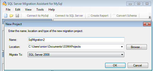2. 新建工程(因之前新建过一次,测试过一遍后删除了,所以此出为SqlMigration2)